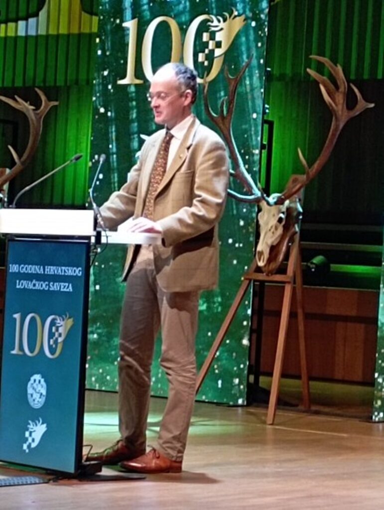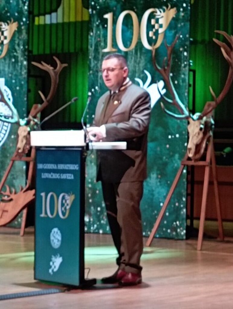 Predsednika Lovske zveze Slovenije, g. Kovšco pa je s strani organizatorjev doletela še posebna čast, da je zbrane nagovoril v imenu vseh častnih lovskih gostov iz tujine. V svojem govoru je izpostavil pomen lovstva v sedanjem in prihodnjem času, ki ni vezan izključno na uravnavanje števila divjadi z odstrelom, pač pa na mnogo širše poslanstvo lovcev, ki temelji na naravovarstvu, ohranjanju naravnega okolja, skrbi za lovne in zavarovane živalske vrste ter na izobraževanju lovcev in javnosti. Hrvaške lovce je pohvalil za čuvanje Narave in 100-letno negovanje njihove lovske tradicije ter jim ob čestitkah zaželel še obilo uspehov na vseh področjih. Svoj govor je zaključil s tradicionalnim lovskim pozdravom »dober pogled ter lovski zdravo«.