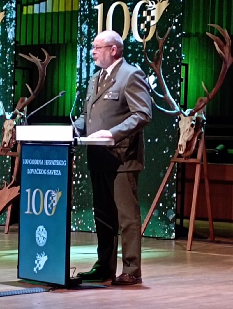 Predsednika Lovske zveze Slovenije, g. Kovšco pa je s strani organizatorjev doletela še posebna čast, da je zbrane nagovoril v imenu vseh častnih lovskih gostov iz tujine. V svojem govoru je izpostavil pomen lovstva v sedanjem in prihodnjem času, ki ni vezan izključno na uravnavanje števila divjadi z odstrelom, pač pa na mnogo širše poslanstvo lovcev, ki temelji na naravovarstvu, ohranjanju naravnega okolja, skrbi za lovne in zavarovane živalske vrste ter na izobraževanju lovcev in javnosti. Hrvaške lovce je pohvalil za čuvanje Narave in 100-letno negovanje njihove lovske tradicije ter jim ob čestitkah zaželel še obilo uspehov na vseh področjih. Svoj govor je zaključil s tradicionalnim lovskim pozdravom »dober pogled ter lovski zdravo«.