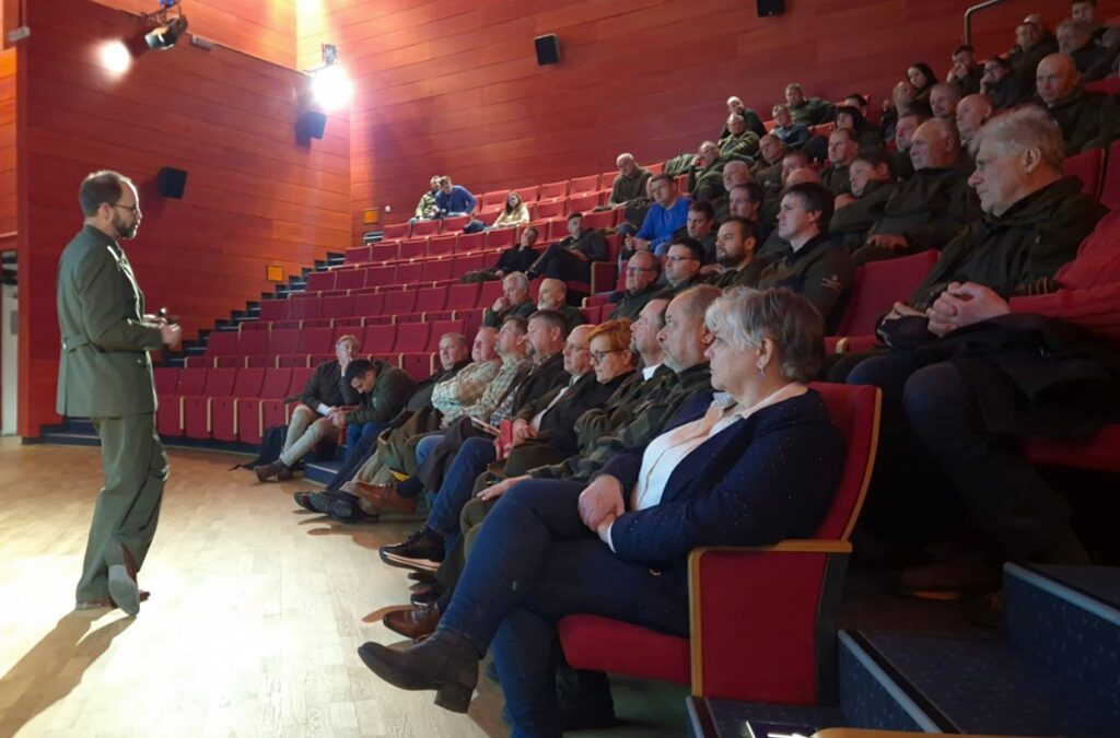 Jana Gržinič, direktorica Zavoda za turizem Pivka, ki upravlja s Centrom o velikih zvereh Dina Pivka, se je v svojem nagovoru ozrla tudi v preteklost in spomnila na začetke sodelovanja z lovci, ki segajo v čas študijskega krožka Mi in zveri. Prav ta pobuda je že takrat pokazala, kako nujno je povezovanje različnih deležnikov ter iskanje skupnih interesov na področju sobivanja človeka in prostoživečih živali. Ob tem je poudarila, da si v Zavodu za turizem Pivka želijo nadaljnjega povezovanja z organizacijami, kot je Lovska zveza Slovenije, ter ustvarjanja prostora, kjer se srečujejo strokovno znanje, praksa in odgovornost do narave. Zahvalila se je tudi vsem, ki širijo strokovno znanje o prostoživečih živalskih vrstah.