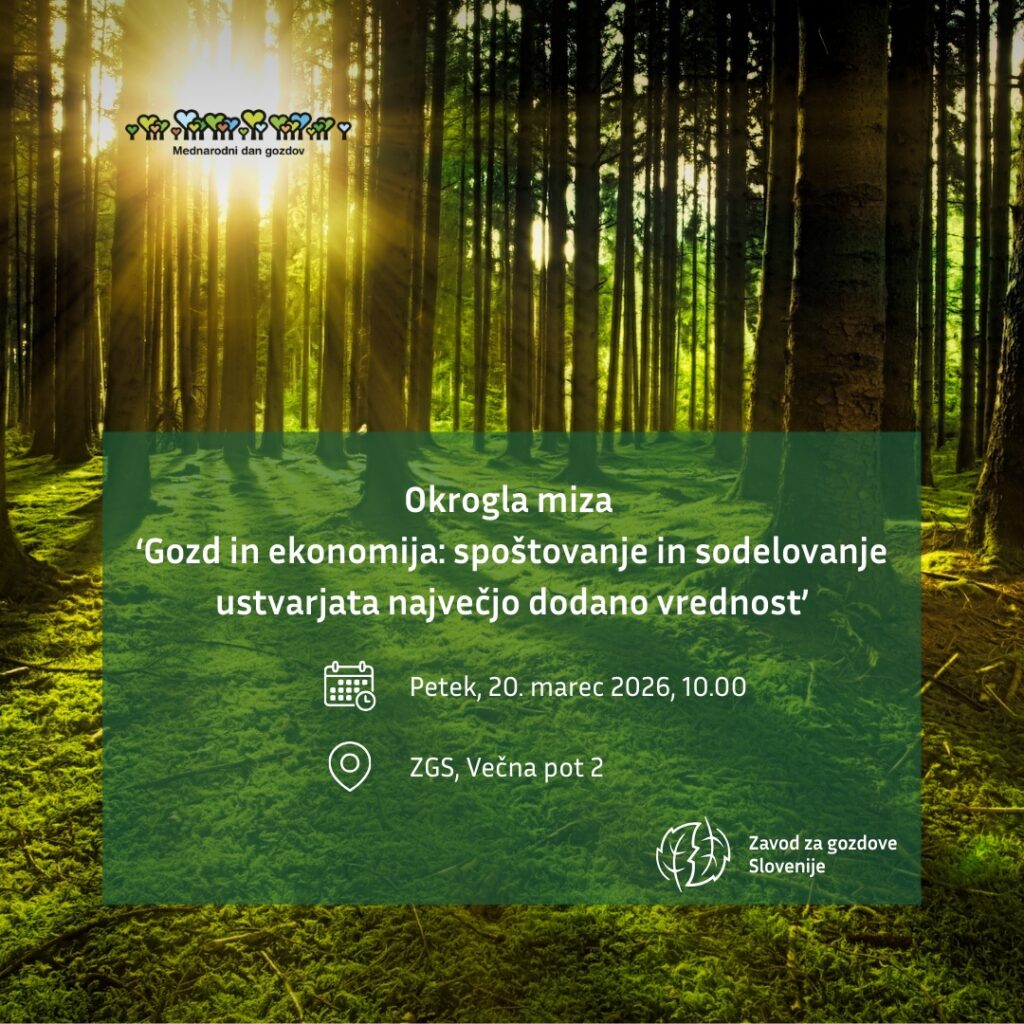 Zavod za gozdove Slovenije v petek, 20. marca, ob 10. uri vabi na okroglo mizo z naslovom Gozd in ekonomija, ki bo potekala v dvorani GIS, Večna pot 2, Ljubljana.